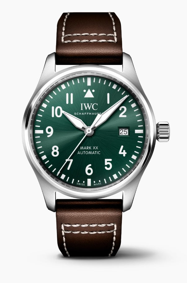 40MM SS PILOT'S WATCH AUTOMATIC MARK XX WITH GREEN ARABIC MARKER DIAL WITH DATE AND LEATHER STRAP