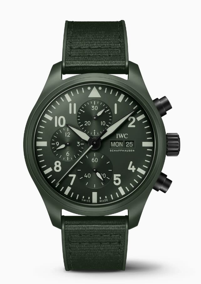 45.5mm CERAMIC PILOT'S WATCH CHRONOGRAPH TOP GUN EDITION "WOODLAND" GREEN DIAL GREEN RUBBER STRAP