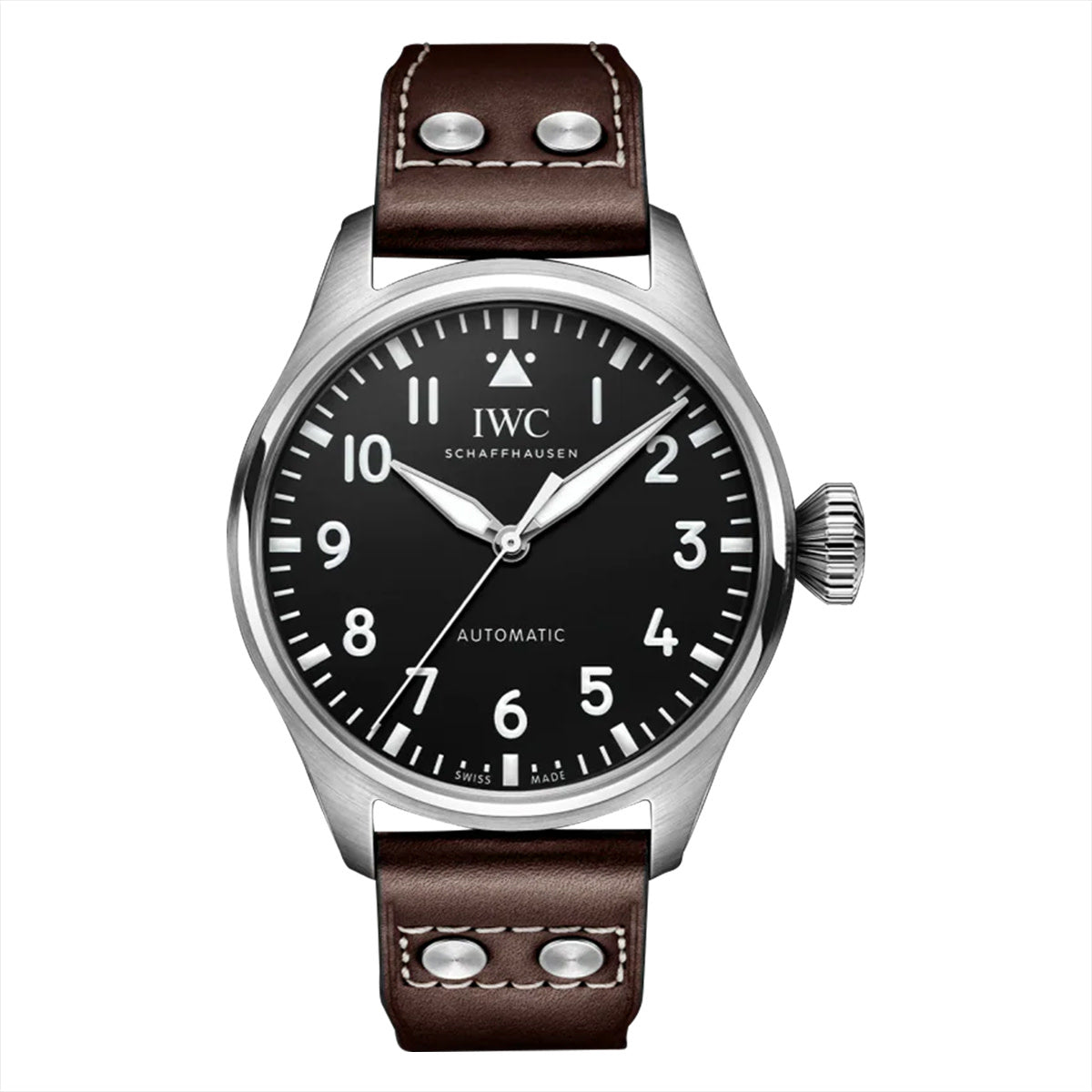 43mm Big Pilot with Black Arabic Marker Dial with no date on a strap in Stainless Steel