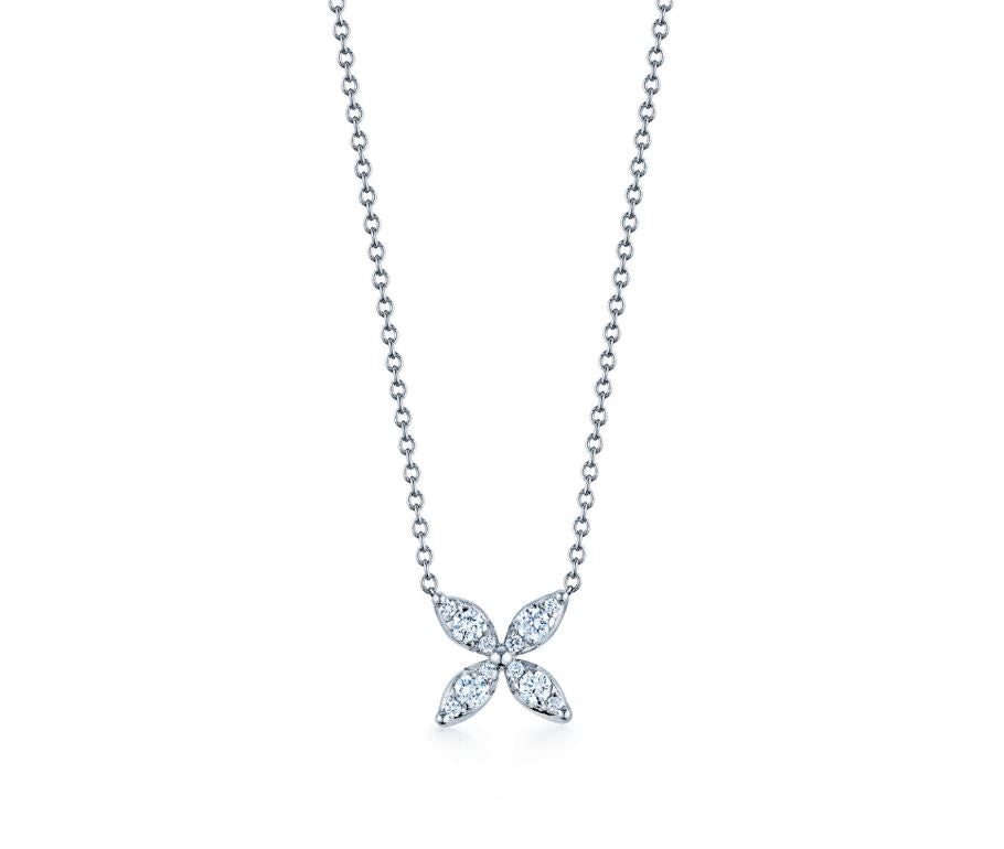 Sunburst 0.18ct of GH/VS2–SI1 diamonds set in an X necklace crafted in 18K white gold, 18 inches.