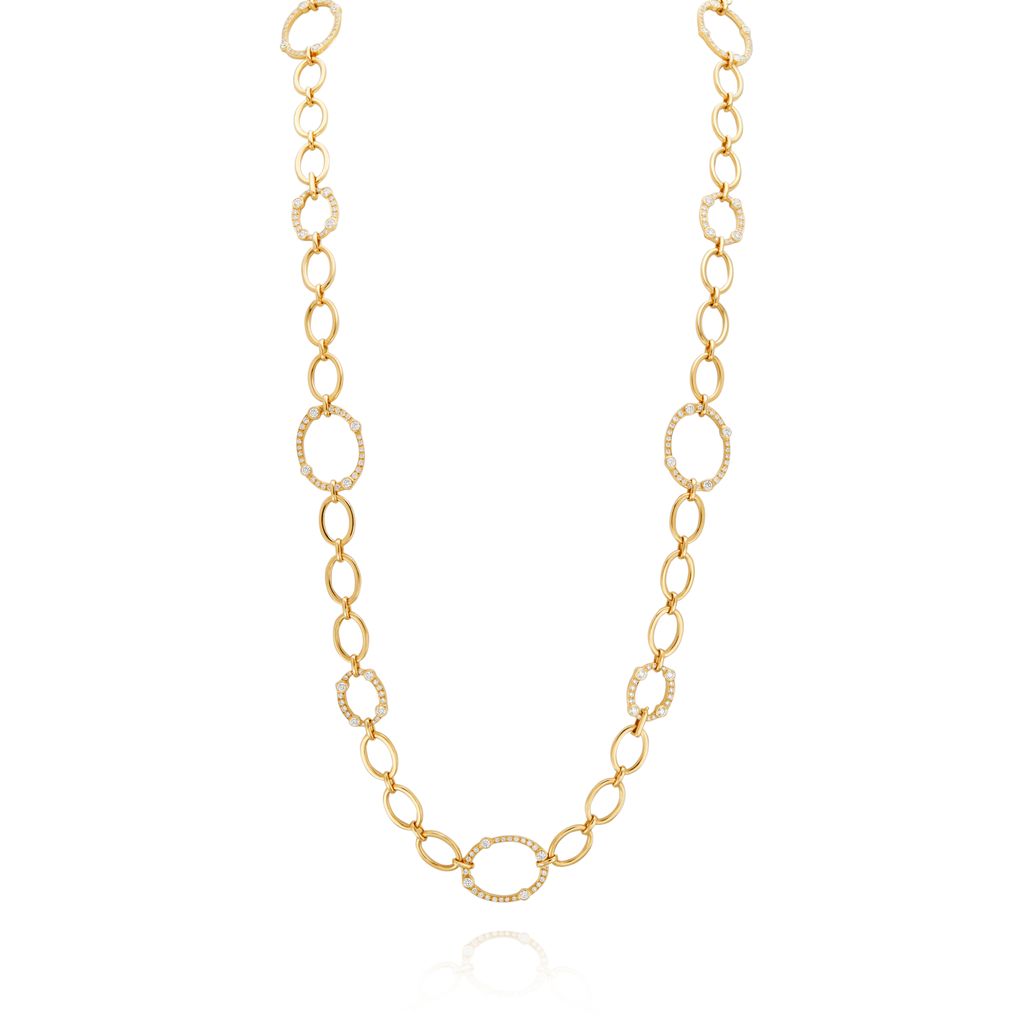 Carousel 7.01ct of HI/VS–SI diamonds set in an alternating link necklace crafted in 18K yellow gold, 35.25 inches.
