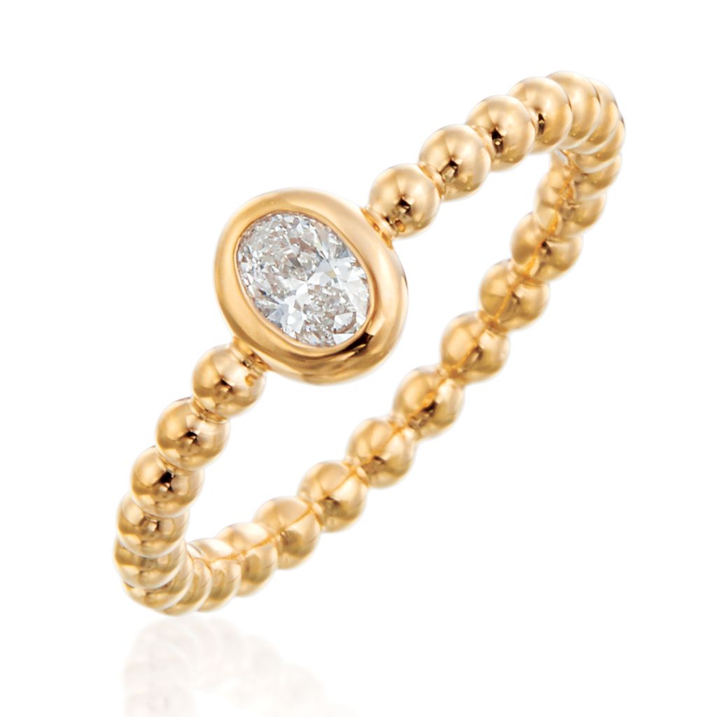 Nutmeg 0.23ct Oval Diamond Bezel Stack Ring in 18K Yellow Gold, size 7