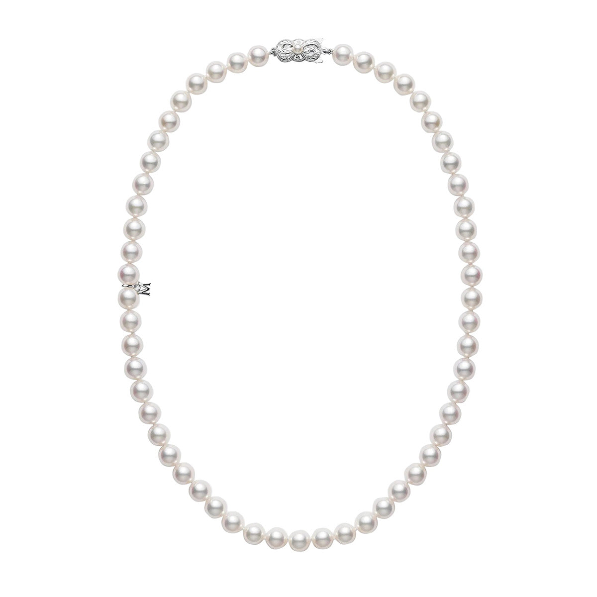 Princess necklace with 7.5x7mm A+ pearls, crafted in 18K white gold, 18 inches.